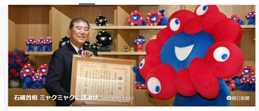 13石破首相がミャクミャクに感謝状 「これからも、来てくれるよね」Name名無し 25/10/13(月)16:13:51 IP:153.246.*(ocn.ne.jp)No.4380986そうだねx1