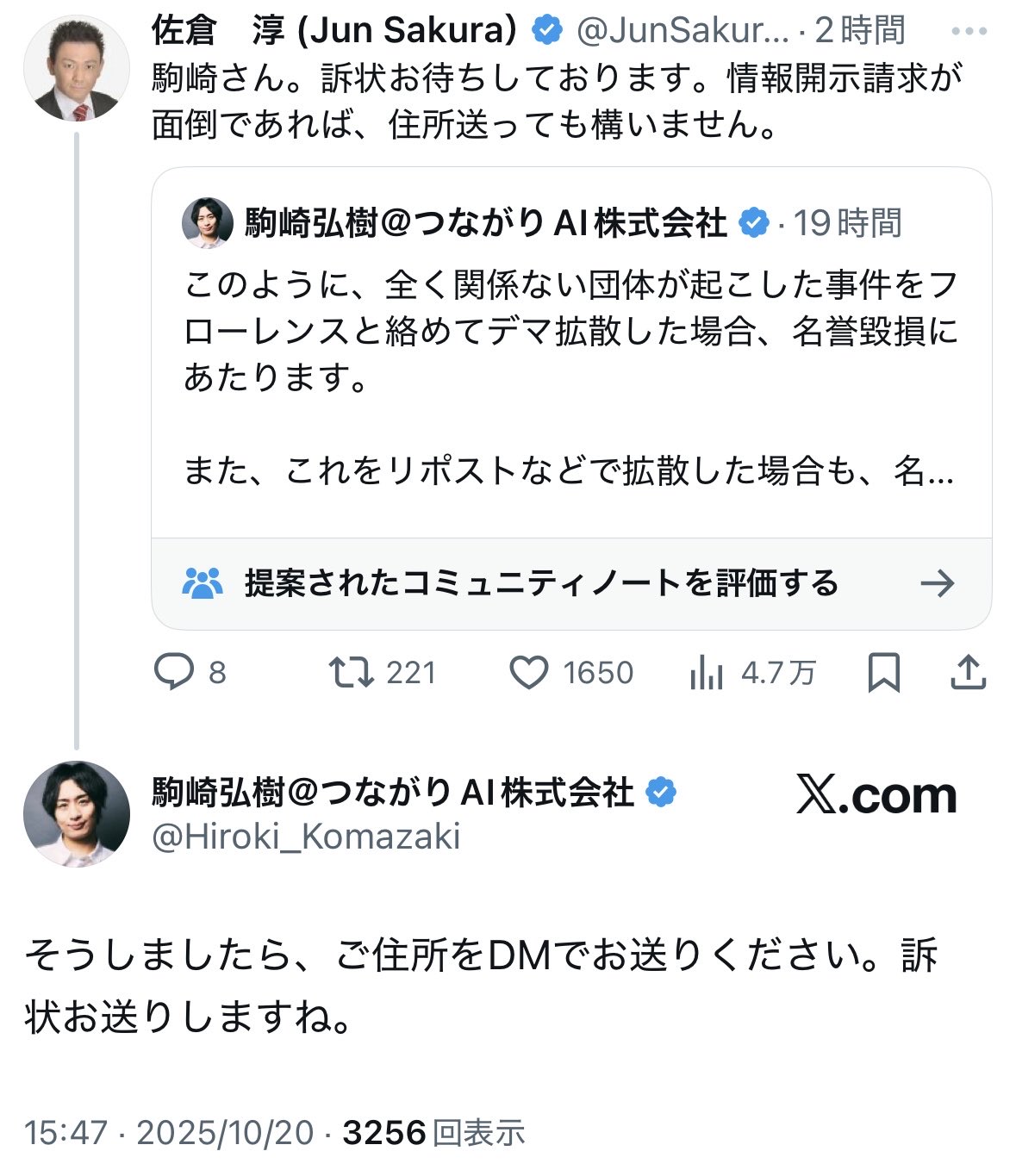 … | 34無題Name名無し 25/10/22(水)08:37:32 IP:59.132.*(au-net.ne.jp)No.4381848+>噂の駒崎さん関連で祭りの予感 |