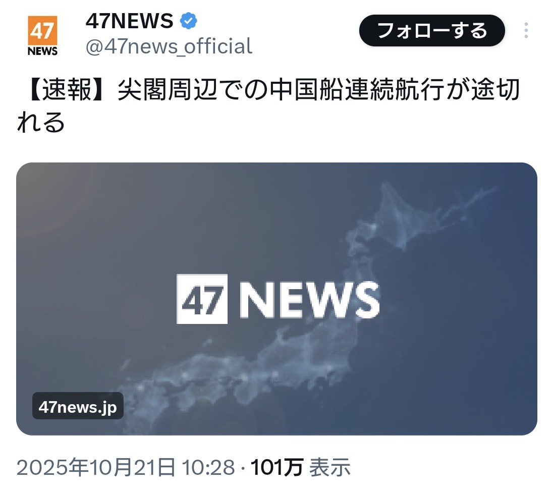 … | 11無題Name名無し 25/10/21(火)17:35:40 IP:106.128.*(au-net.ne.jp)No.4381799そうだねx1>おや?尖閣の様子が… |