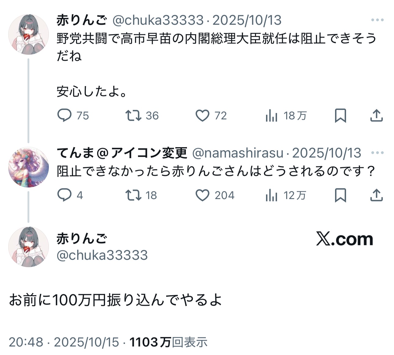 … | 21無題Name名無し 25/10/21(火)23:44:15 IP:27.141.*(home.ne.jp)No.4381831+>IP:58.189.*(mineo.jp) |
