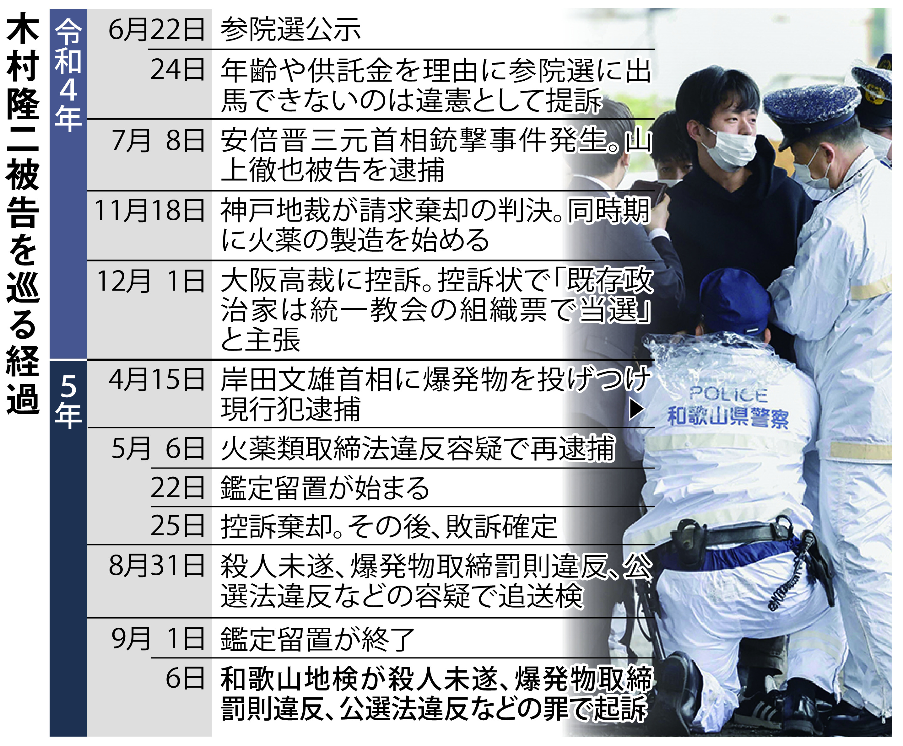 白髪まじりの長髪で、事件当時の様子と比べ、やつれた様子でした。