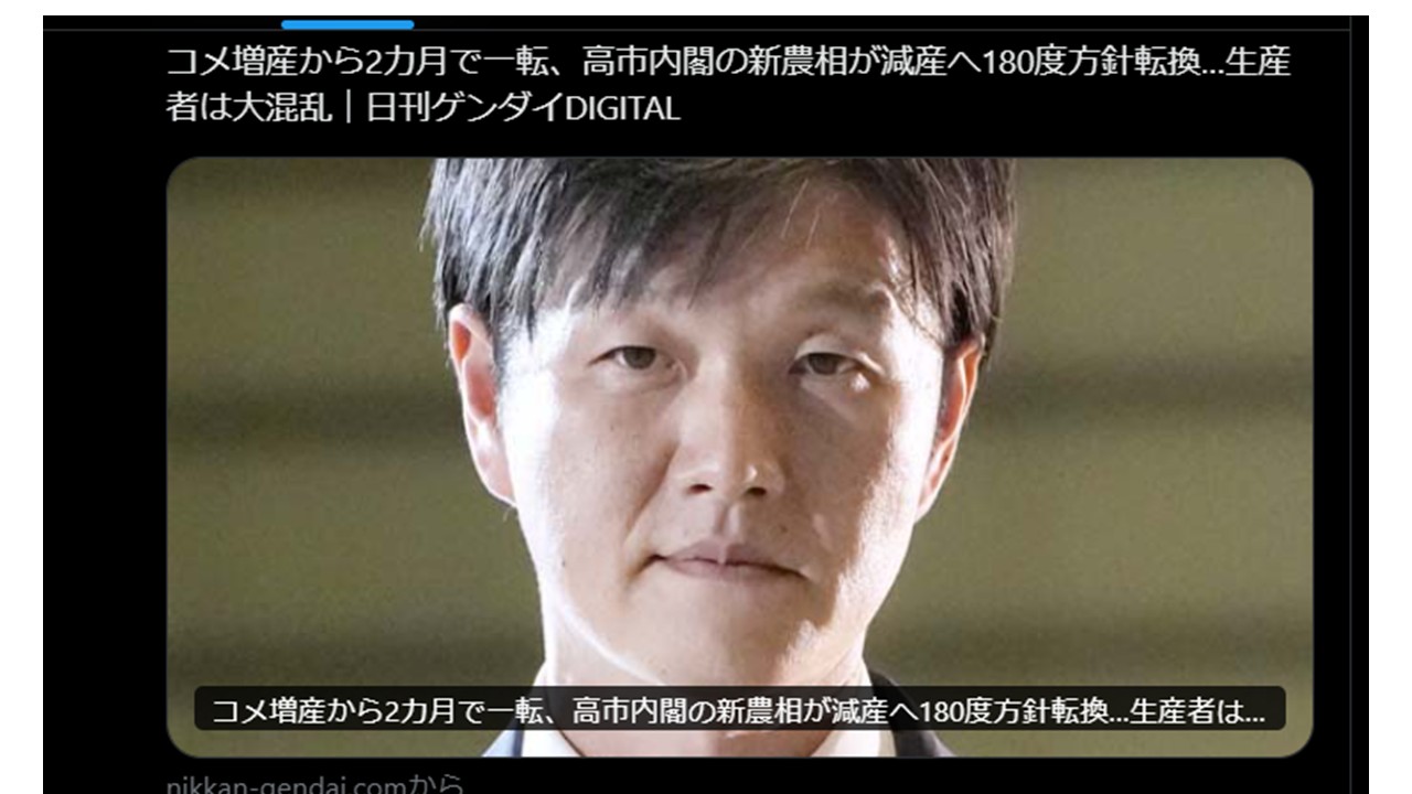そのため、来年の日本産コメの減産。