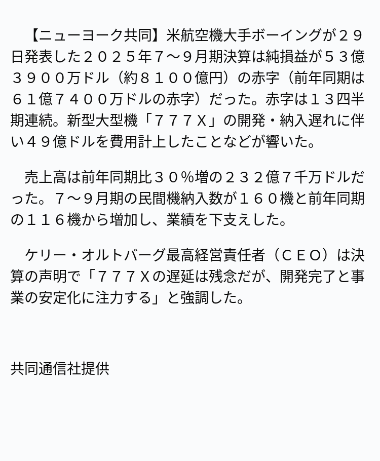 米ボーイング社、7ー9月決算で8100億円の赤字。