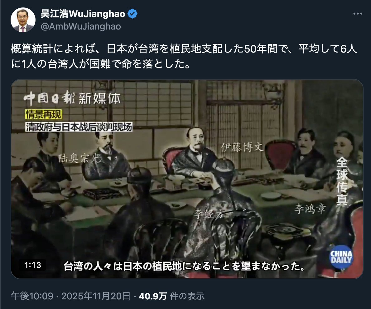| … | 2無題Name名無し 25/11/22(土)10:04:17 IP:114.155.*(ocn.ne.jp)No.4384993そうだねx1あれ?おかしーね?台湾は中国の一部って認識じゃなかったの?何で中国人ではなくて台湾人と言ってるんです? |