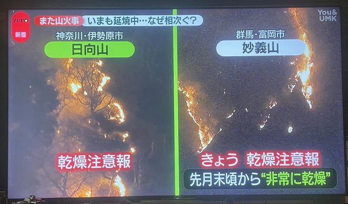師走に入り、またもや山火事が相次いでますね。
