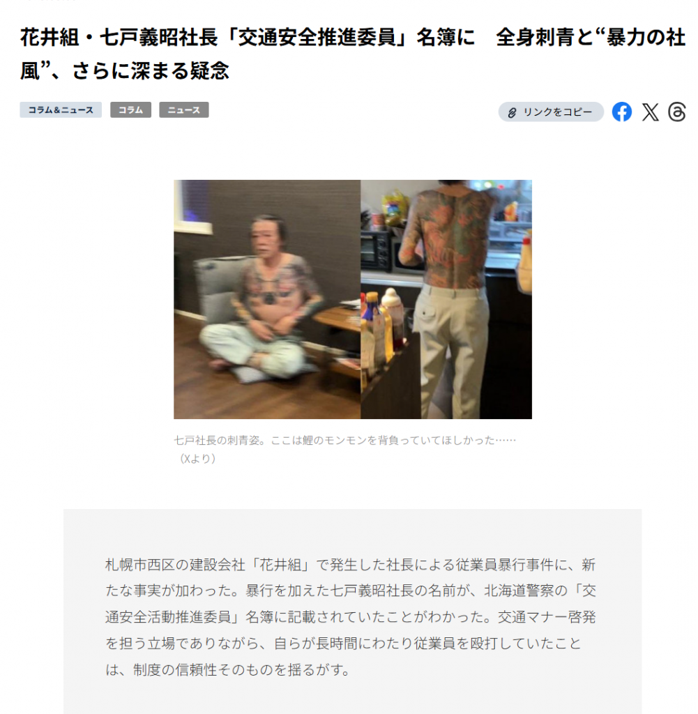 社員に暴行を加え、負傷を負わせた花井組社長と役員2人が不起訴処分。