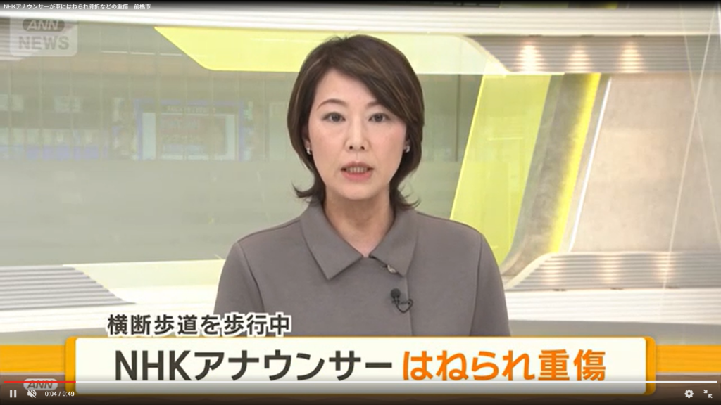◆NHKアナウンサーが車にはねられ骨折などの重傷 前橋市