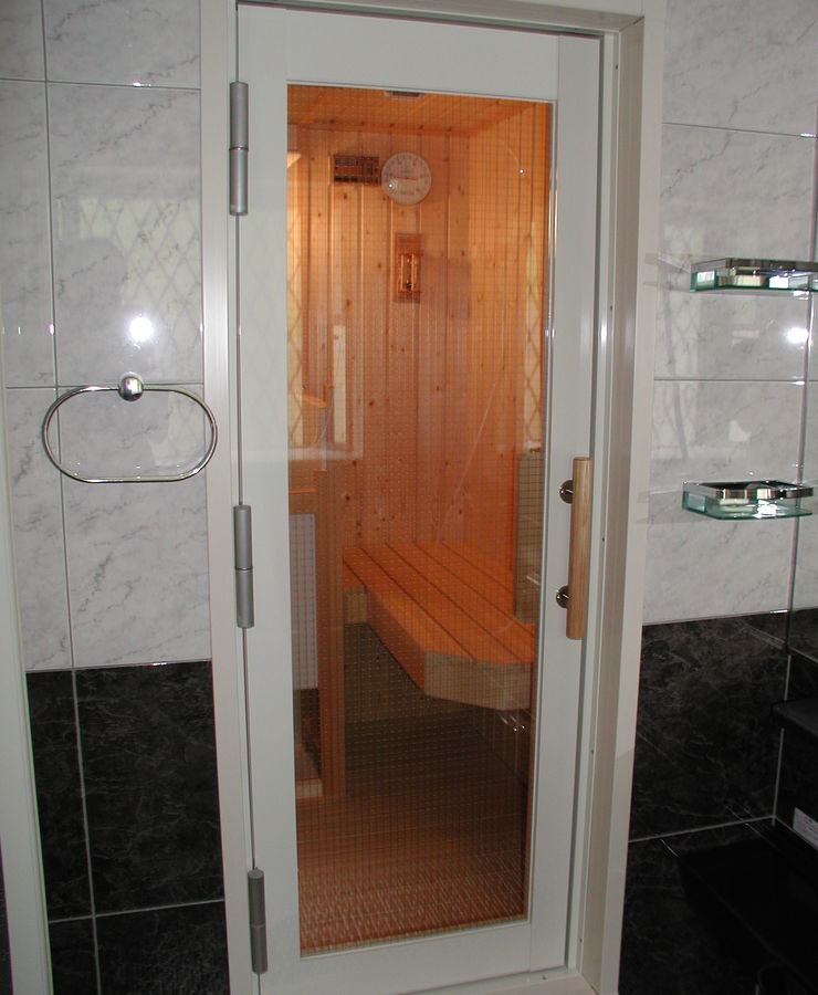 ←スーパー銭湯も始め、『大型入浴施設』だと当たり前に「男女浴室」毎に併設されてたりする「サウナ室」、普通は「(中で客が昏倒しても救助しやすい)外開きドア」であり、ロックラッチや「開閉用ノブ」は使ってない