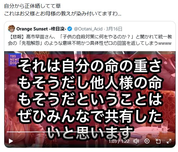 所詮は、朝鮮カルト邪教、T1協会2世の「完全洗脳奴隷信者」の高市早苗さん。