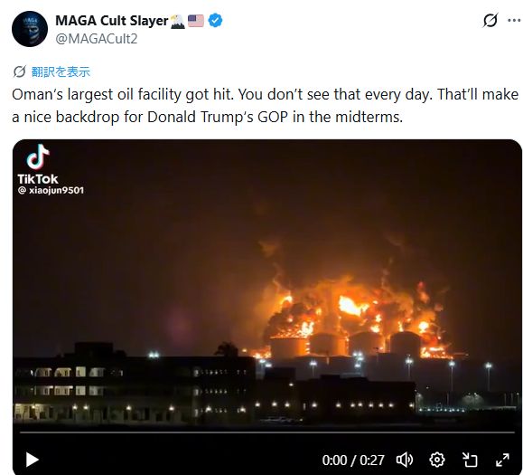 中東の産油国の石油設備がイランの攻撃で燃え盛ると、原油価格が上がって、米国民がガソリンの値上げに激昂する。