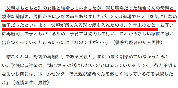 | … | 13無題Name名無し 26/04/16(木)12:35:29 IP:27.91.*(au-net.ne.jp)No.4398326+行方不明の少し前にホームセンター近くで結希君らしき子がレンタカーから降りてきた奴に怒鳴られたり叩かれてる目撃証言があったみたいだけど本人で間違いなさそうだな |